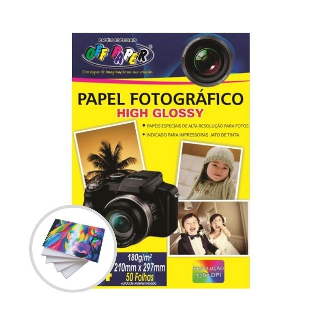 Papel Fotográfico High Glossy 180g A4 c/ 50 Fls