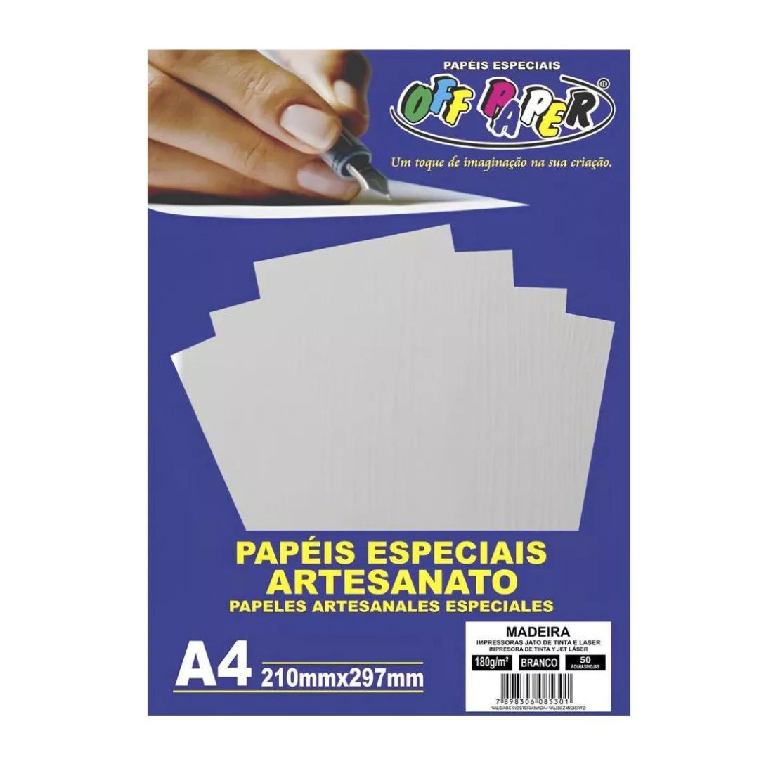 Papel Madeira Branco 180g A4 c/ 50 Fls Offpaper